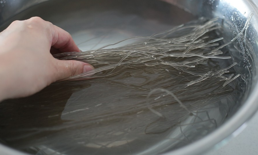 당면은 먼저 찬물에 30분 내외로 불러주세요. 당면을 삶을 거라서 뜨거운 물이 아닌 찬물에 담가서 불려주셔야 나중에 퍼지지 않습니다. 찬물에 30분 정도 담가 두면 살짝 늘어지는 정도가 됩니다. 불리는 시간 동안 나머지 재료를 준비해 두시면 됩니다.